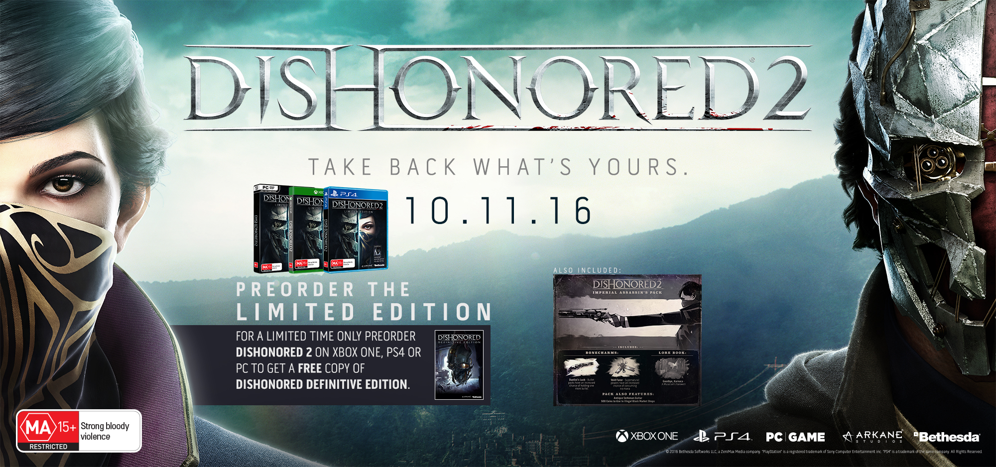 Out this Thursday 10th November is Dishonored 2! Several versions are available exclusively from EB, some preorder offers are floating around and if you buy a PS4 Pro you can grab the game for 50% off at EB & JB.