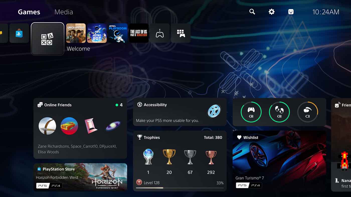 The biggest addition is a new personalised Welcome hub which is a dedicated space on your PS5 replacing the explore tab with a variety of widgets including console storage, battery levels, online friends, trophies, and many more.